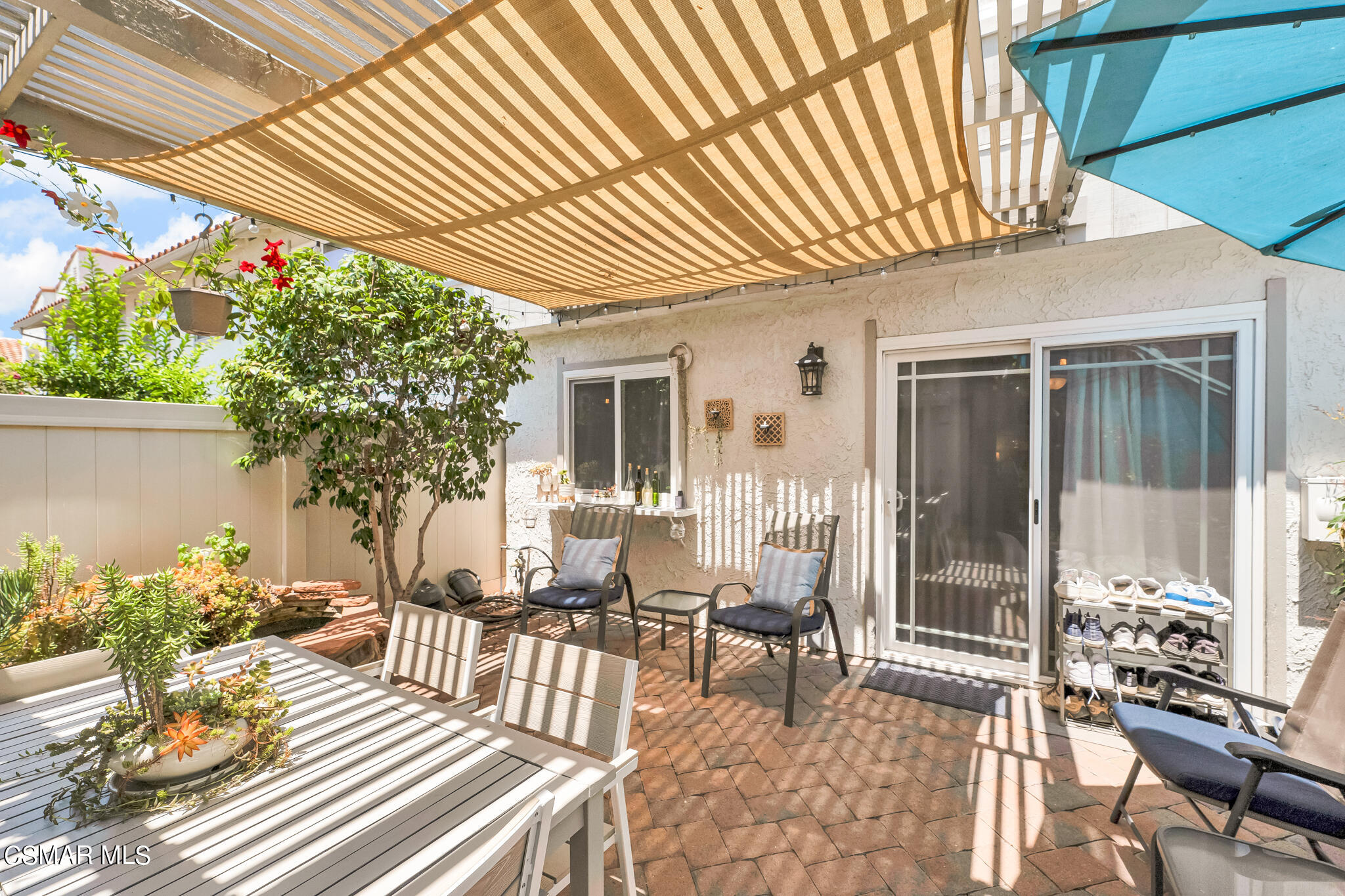 Welcome to 231 Green Heath Place! ... an immaculate, turnkey, move-in ready gem in the highly sought-after Los Robles Townhomes community. This charming 3-bedroom, 3-bathroom, 1,356 sq ft home invites you in with its delightful curb appeal. Step inside to find an abundance of natural light, elegant Acacia wood-like flooring, high ceilings, recessed lighting, a neutral interior color palette and dual-pane windows throughout. The remodeled chef's kitchen is a standout - featuring stainless steel appliances, a hidden/concealed dishwasher, XL farmhouse sink, stylish white cabinetry with modern black hardware, subway tile detail, decorative faux tin ceiling and industrial lighting fixtures. Enjoy the formal dining room that has been converted into a ''very cool'' versatile recreation area, guest retreat, office or playroom (choice is yours) highlighting custom made sliding doors with tempered glass (living room side opening) as well as a barn door (hall side opening) allowing for complete privacy. The main level also includes a spacious living/family room, convenient 1/2 guest bathroom, indoor laundry area and a large glass slider leading to the private outdoor patio. This serene space boasts a calming water feature, custom pavers and direct access to the 1-car garage and a covered parking space with storage. Ascend the contemporary staircase to the second floor where the generous primary retreat awaits. This sanctuary showcases a double-door entry with upgraded ensuite bath and walk-in closet. Two guest bedrooms with ample closet space and a full guest bathroom complete the upper level. All bedrooms have modern Casablanca ceiling fans and crown molding. The Los Robles Townhomes community provides an array of amenities, including two sparkling pools, spa, recreational room, play area, greenbelts and more. Centrally located near shopping, restaurants, hiking and biking trails, Los Robles Golf Course and easy access to the 101 freeway - this home truly has it all!